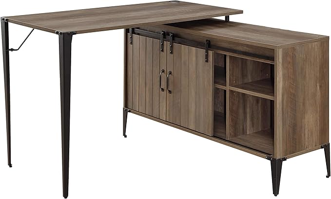 NicBex Laik-DW-00068-DX Desks, 48" W x 48" D x 31" H, Rustic Oak+Black