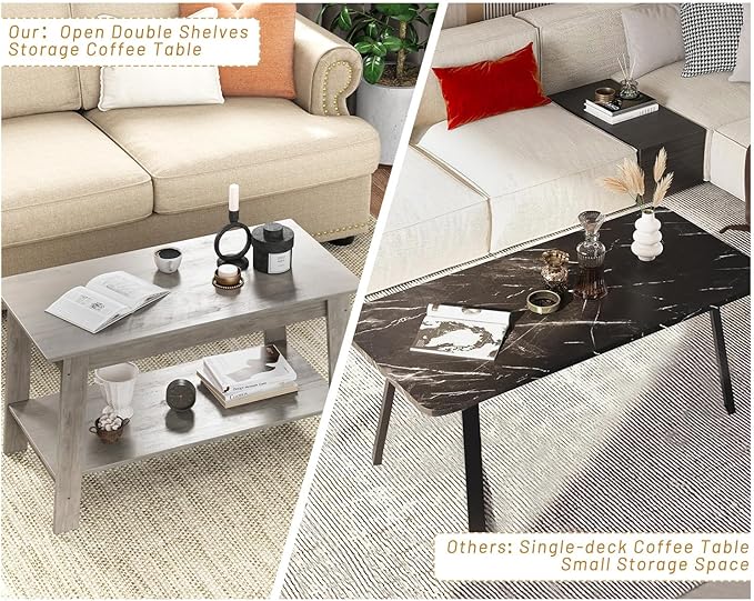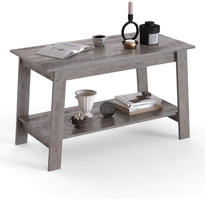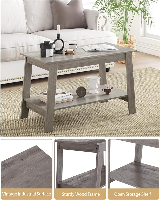 Coffee Table with Storage Shelf, 2-Tier Coffee Tables for Living Room, Farmhouse Wood Rectangle Small Coffee Table, Living Room Tables, TV Stands, Minimalist Modern Center Table, Easy Assembly, Gray