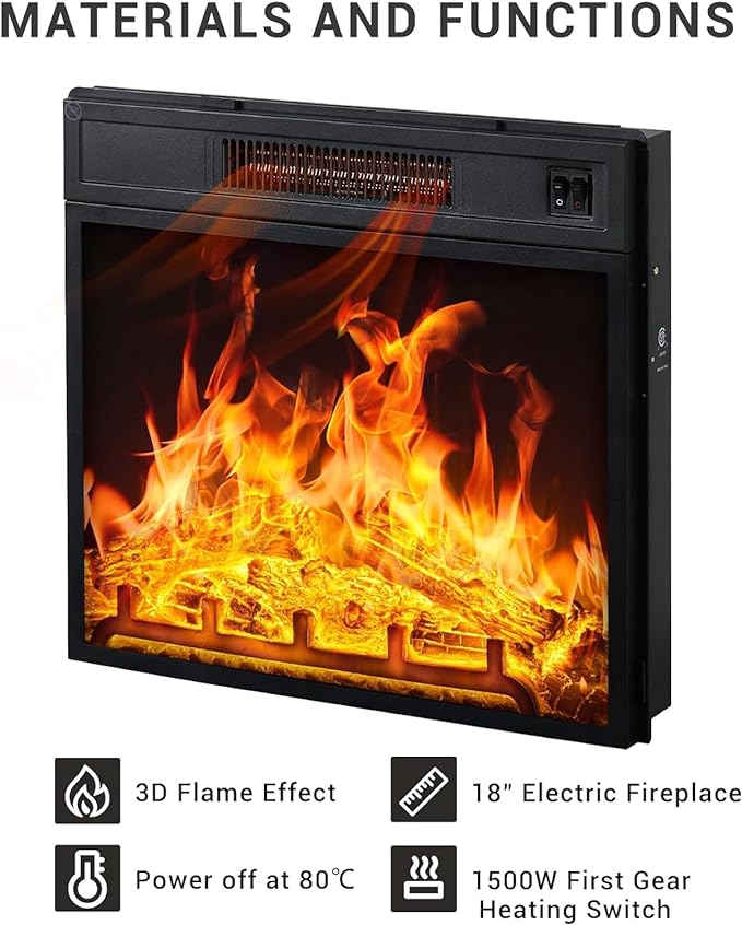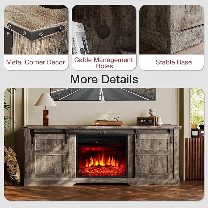 About This 【TV Stand with Electric fireplace】This entertainment center with fireplace is equipped with a 18" electric fireplace, which comes...
