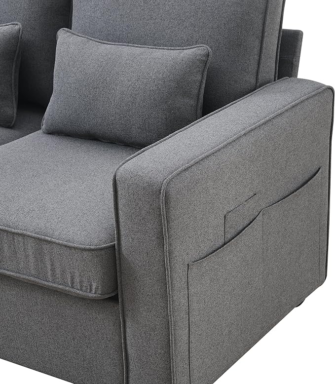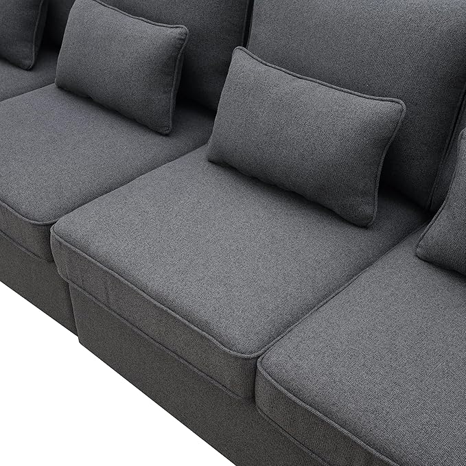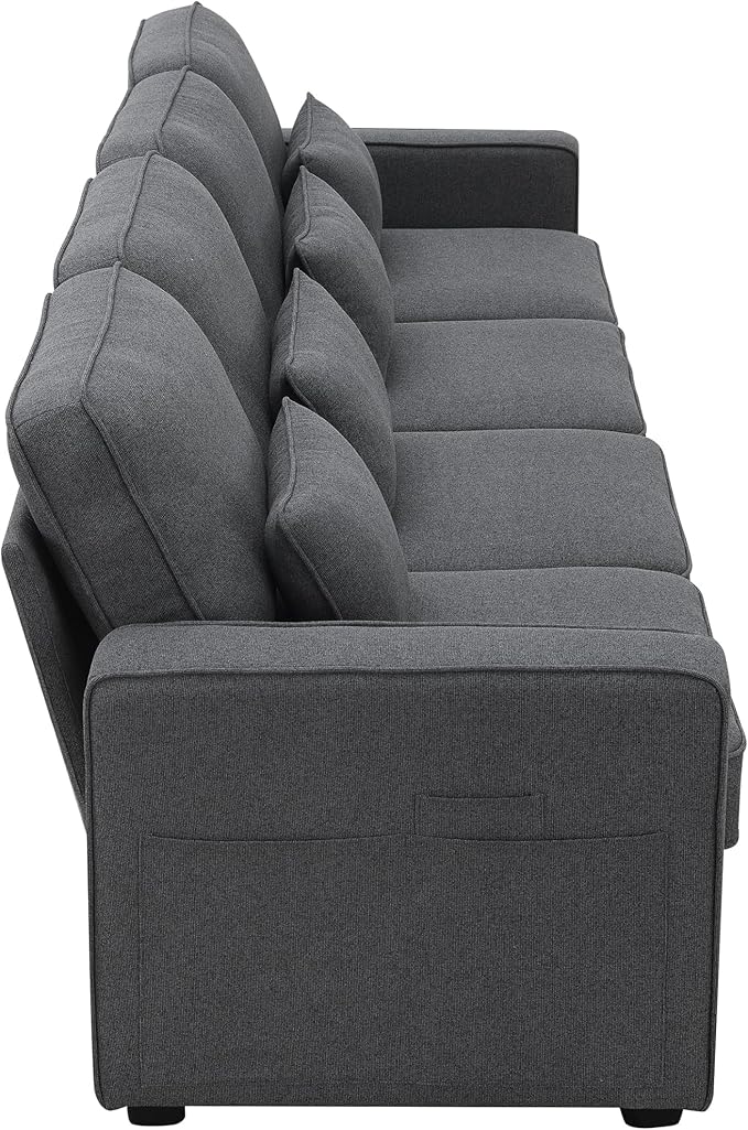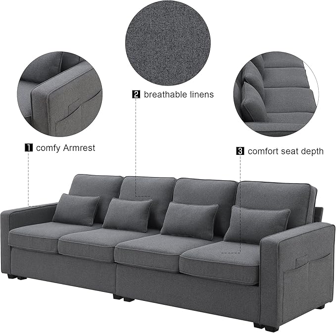 104" Modern Sofa, 4-seat Couch with Armrest Pockets and 4 Pillows for Living Room, Apartment, 104inch, Dark Gray
