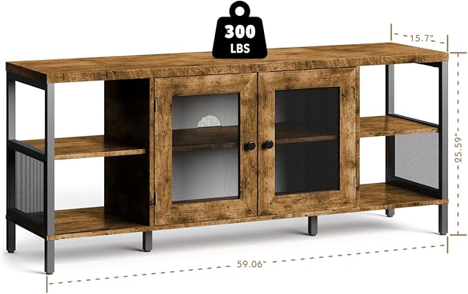 TV Stands for Living Room, TV Stand 65 Inch for Bedroom, Industrial & Farmhouse Tv Console Entertainment Center with Storage, Modern Wood Television Stands and Metal Open Bookshelf, Brown