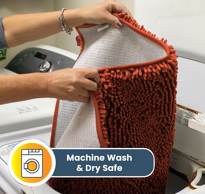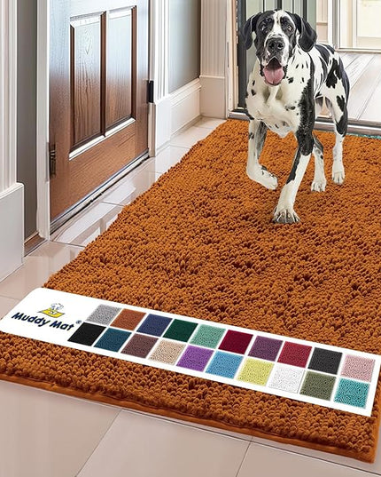 Muddy Mat® Shown on TV – Super Absorbent Microfiber Dog Door Mat for Muddy Paws, Non-Slip Washable Pet Rug, Quick Dry Chenille Entryway Carpet, Machine Washable Indoor Outdoor mat, Orange 59"x35"