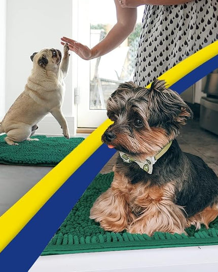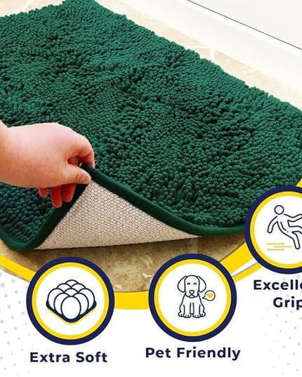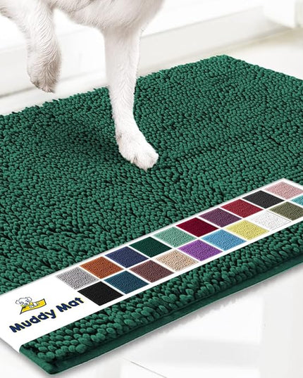 Muddy Mat® Shown on TV – Super Absorbent Microfiber Dog Door Mat for Muddy Paws, Non-Slip Washable Pet Rug, Quick Dry Chenille Entryway Carpet, Machine Washable Indoor Outdoor mat, Dark Green 35"x24"