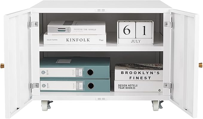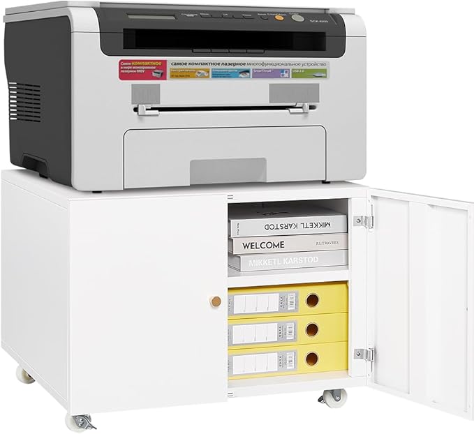 17.70" Metal Office Copier 2 Door and 360 ° Universal Wheel,Mobile Lateral Filing Cabinets w/Aluminum Alloy Handle,Rolling Printer Stand for Legal/Letter/A4,White