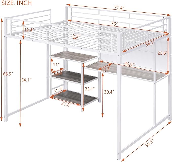 About This Metal [Multipurpose bed framee] This twin size loft bed with stylish desk is a good place for you...