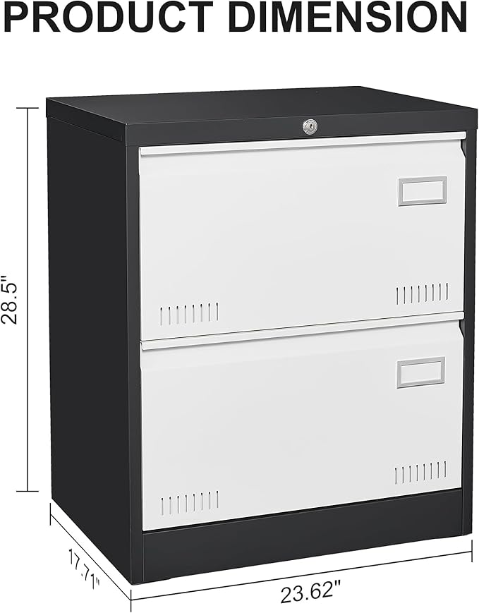 2 Drawer Metal Lateral Lock and Card Holder,Office Vertical Files Storage Cabinets w/Heavy 3 Section Slide Rail & Breathable Holes,for Legal/Letter/A4,Black+White
