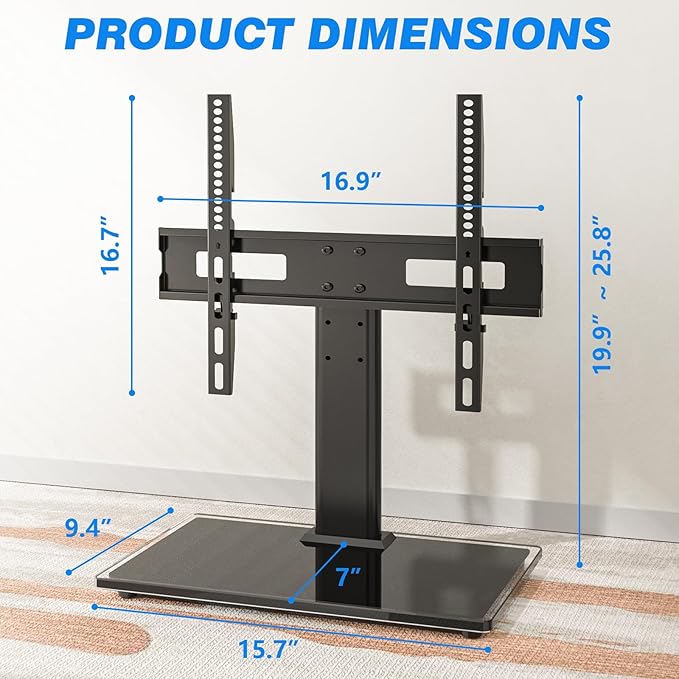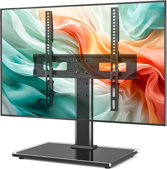 Universal TV Stand Mount for 27-60 inch TVs, Height Adjustable Table Top TV Stand Holds up to 88lbs, TV Mount Stand with Tempered Glass Base, Replacement TV Base Stands Max VESE 400x400mm