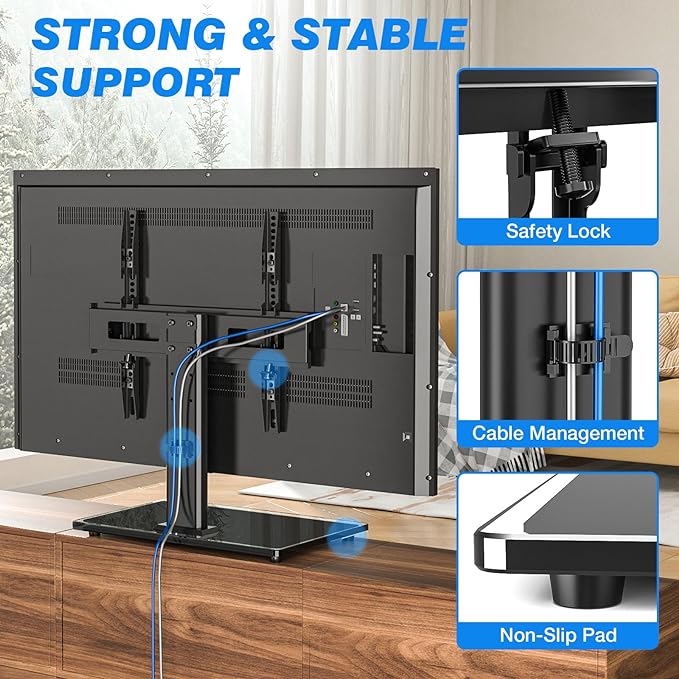 About This 【STRONG STRUCTURE - PROTECTING THE SAFETY OF YOUR FAMILY】: We construct the TV stand mount using high-quality thickened...
