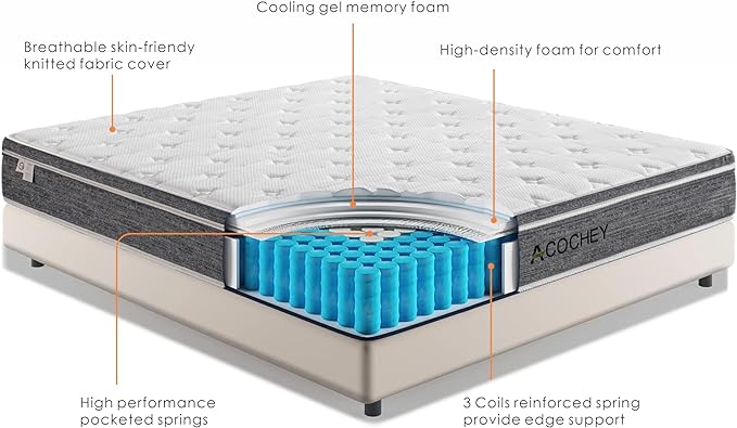 About This 【Comfortable and Breathable】:10 inch gel memory foam hybrid king spring mattress is comfortable breathable and nature, and can...