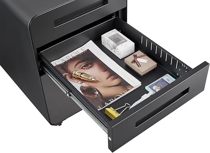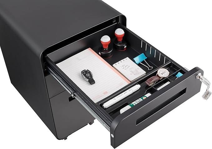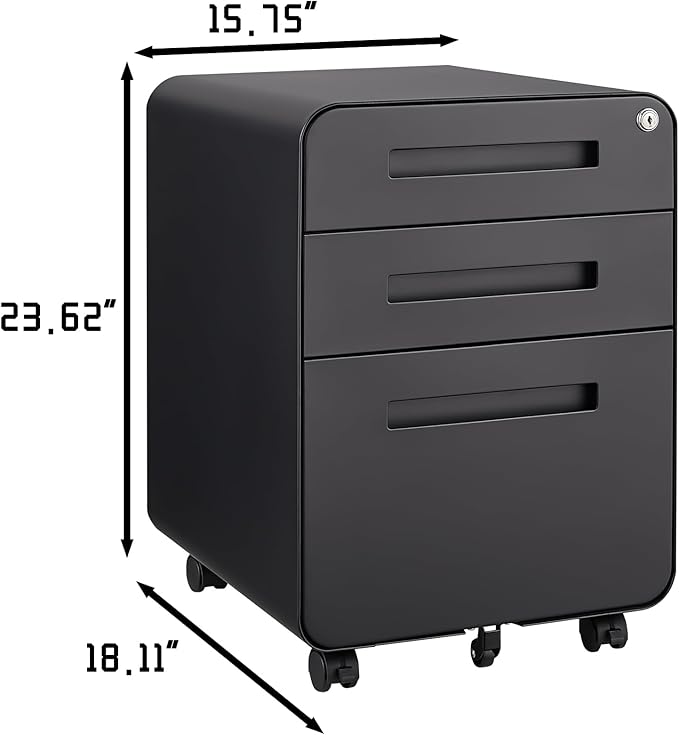 About This Metal 【Lockable File Cabinet]】Ships fully assembled except for the casters. 1 lock secures all three drawers, 2 keys...