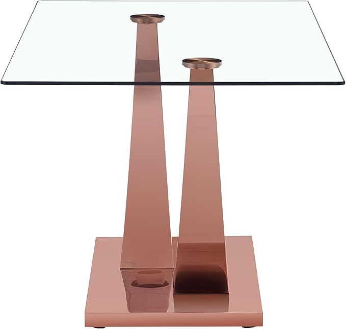 Modern Glass Table with Rectangular Tempered Tabletop,Dinner Desk Set for 4-8 People W, Home,Kitchen,Dining Room,Office,Rose Gold+Clear Finish, 63" U-Shape Pedestal Base