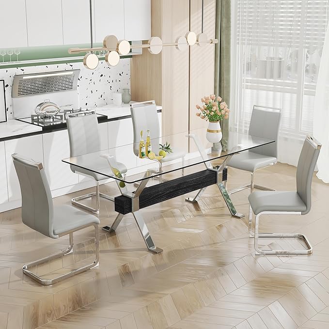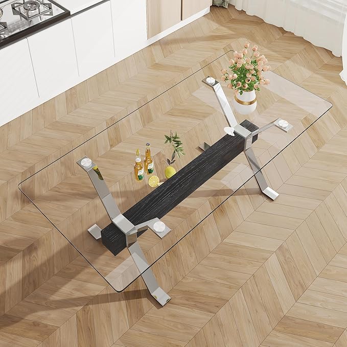 About This Glass 【Dining Room Dining Table Set】:Crafted with high-quality tempered glass material, this dining-table is both stylish and practical,...
