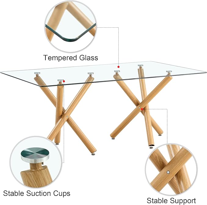 About This Glass 【Glass Dining Table Set for 6-8】:Large modern simple rectangular glass table, which can accommodate 6-8 people,suitable for...