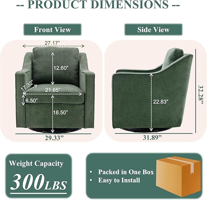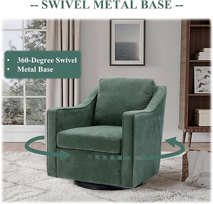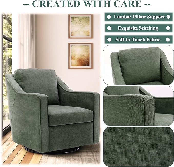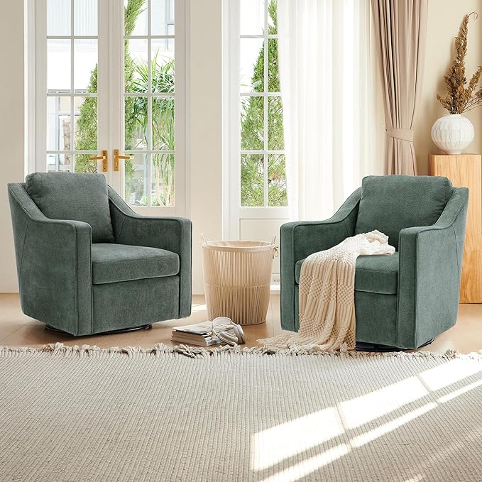 COLAMY 360° Swivel Accent Chair Set of 2, Upholstered Fabric Leisure Armchair with Lumbar Pillow for Living Room Bedroom Home Office, Green