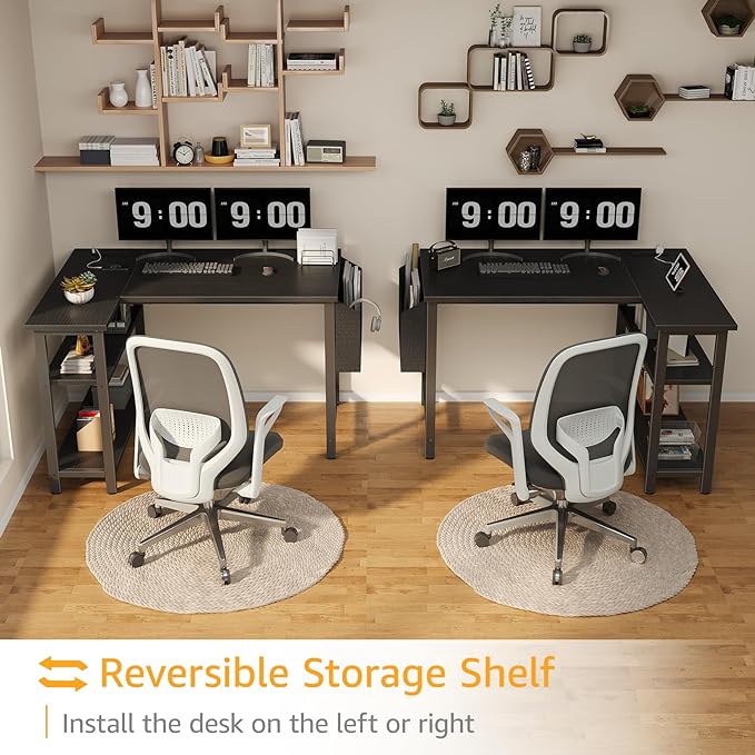 Black L Shaped Gaming Computer Desk with Power Outlet Shelves, 40 Inch Small Corner Desk for Small Space Home Office, Study Work PC Desks for Bedroom, Black