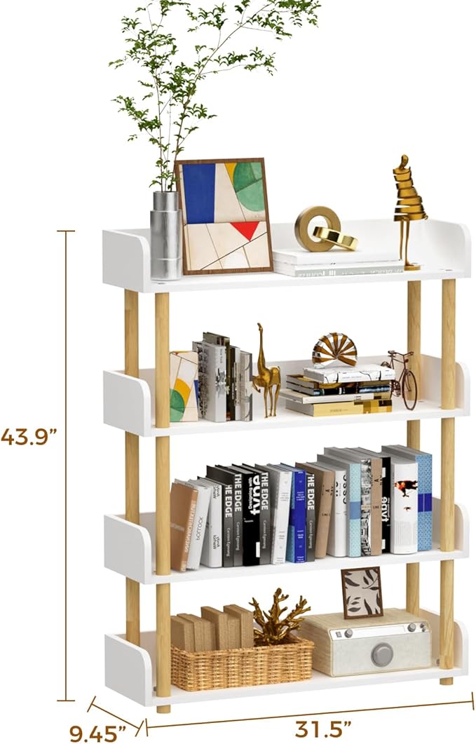 4-Tier Wooden Bookshelf, Modern Open Bookcase with Top Edge and Solid Wood Frame, Freestanding Bookshelf Storage Organizer for Home Office Living Room