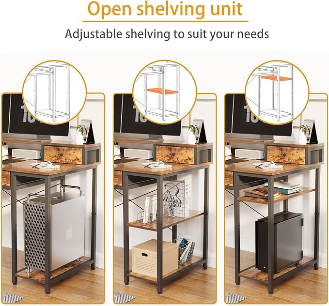 Treesland 47 Inch Multifunctional Computer Desk with Monitor Shelf, Professional Dual Tiers Writing Desk, 3 Drawers, and Storage - Sturdy Home Office Desk, Brown