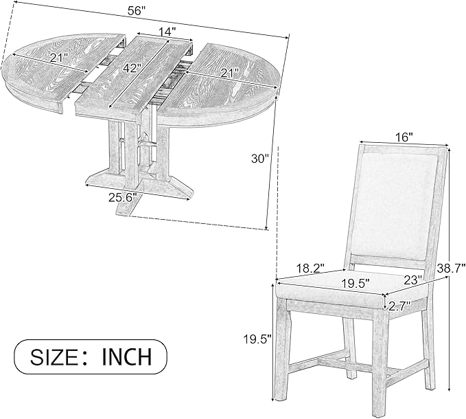 Farmhouse Style Extendable Round 4 Upholstered Chairs, Solid Retro, Easy Assembly, Room, Kitchen, 5 Piece Dining Table Set, Natural Wood Wash 10