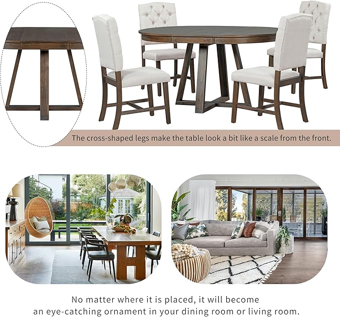 About This Solid Wood This retro dining table set is a classic example where great furniture design doesn't have to...