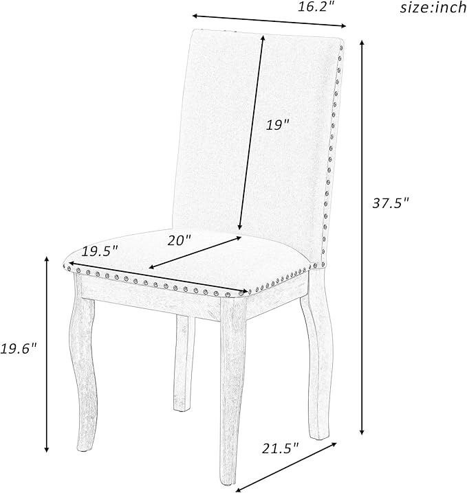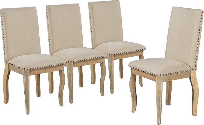 Set of 4 Upholstered Fabirc Chairs with Nailhead, Stable & Solid and Easy Assembly, Kitchen, Living Room, 4 Piece Dining Table Set, Natural Wood Wash 3