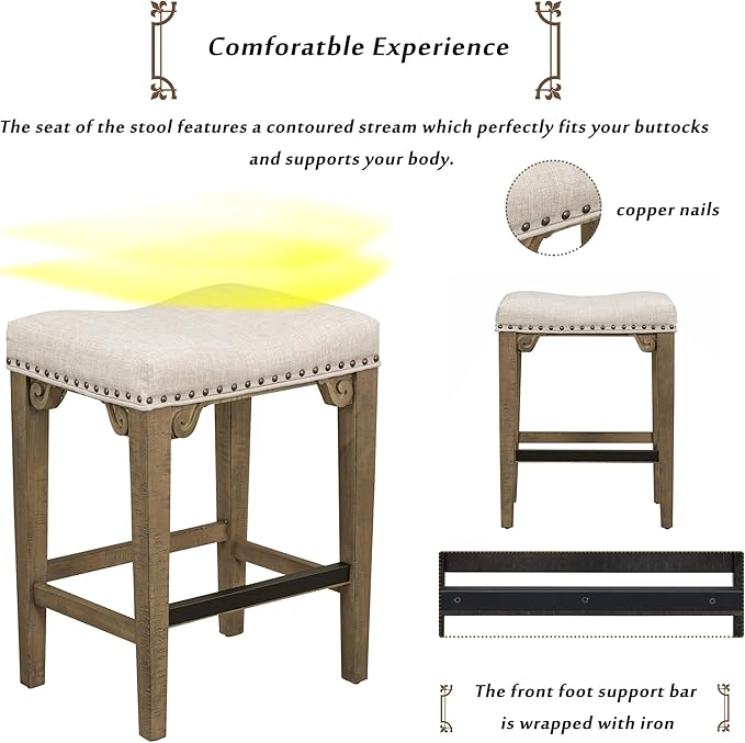 Retro Style 3 Piece Saddle Stools, Solid Wood Counter Height Pub Set Foldable Table, Full Assembly Need, for Kitchen, Dining Room, Small Space, Distressed Brown