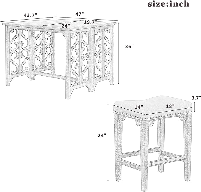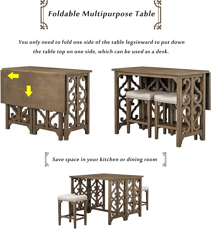 About This Solid Wood The retro 3-piece counter height dining table set consists of a folding dining table and two...