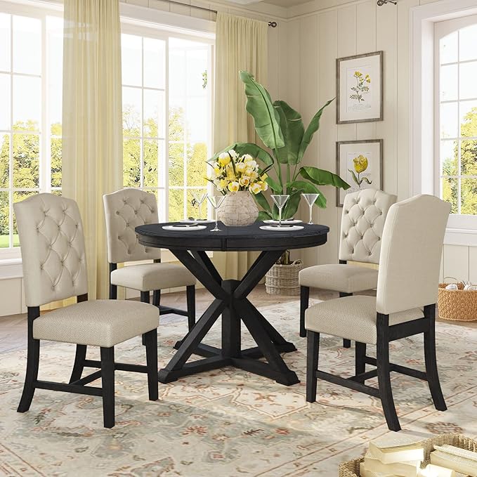 Functional Furniture Retro Style Extendable 4 Upholstered Chairs, Living Room, 5 Piece Dining Table Set, Espresso 24
