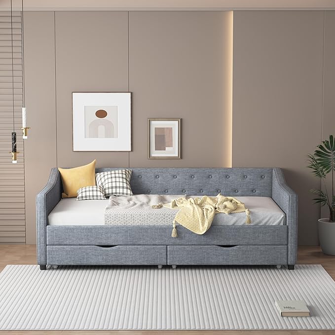 About This Linen Fabric 【Upholstered Daybed】Elegant style upholstered in soft and breathable linen fabric,feature a button tufted backrest and high...