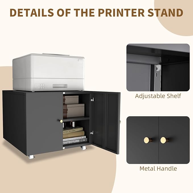 Printer Stands with Storage, Lateral Filing Cabinet for Home Office, Desk Organizers for Home Workspace, Lockable Wheels for Home Office, Scanner, Fax, Computer
