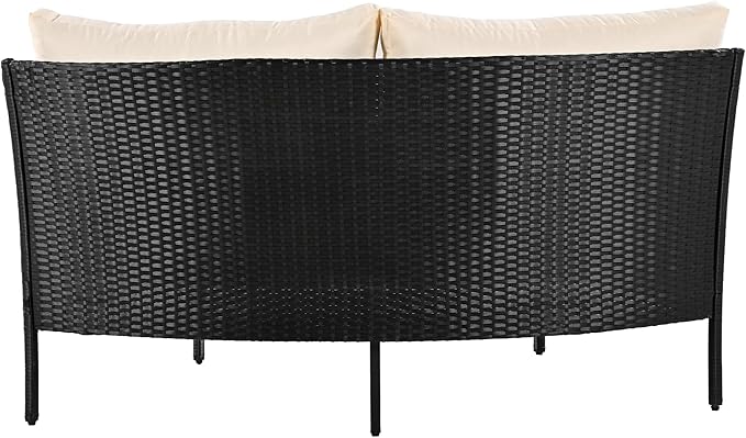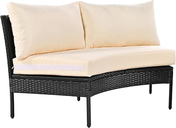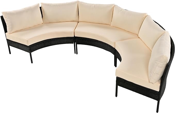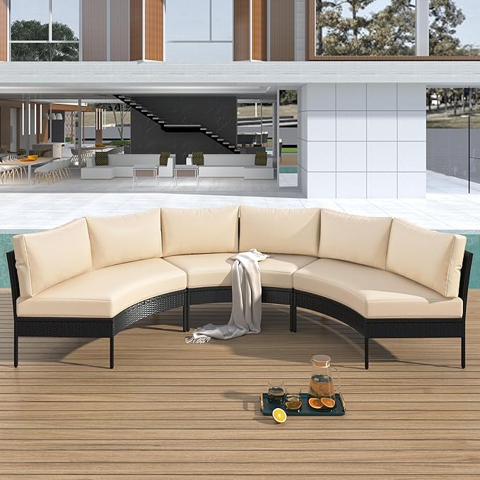 3-Piece Half Moon Patio Furniture Set with Cushions, All Weather Rattan Curved Outdoor Sofa Conversation Group Seatings for Balcony Front Porch Backyard Deck Lawn, Beige