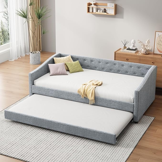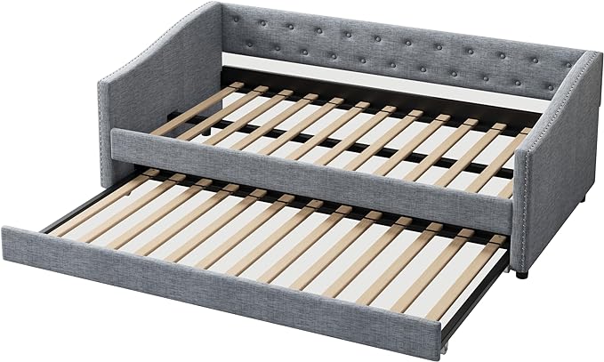 About This Linen Fabric 【Classical Design】This twin size classical upholstered daybed features button tufted backrest that creates an elegant look....
