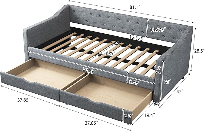 About This Linen Fabric 【Classical Design】This twin size classical upholstered daybed features button tufted backrest that creates an elegant look....