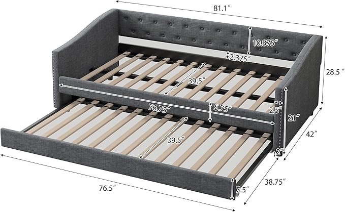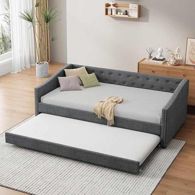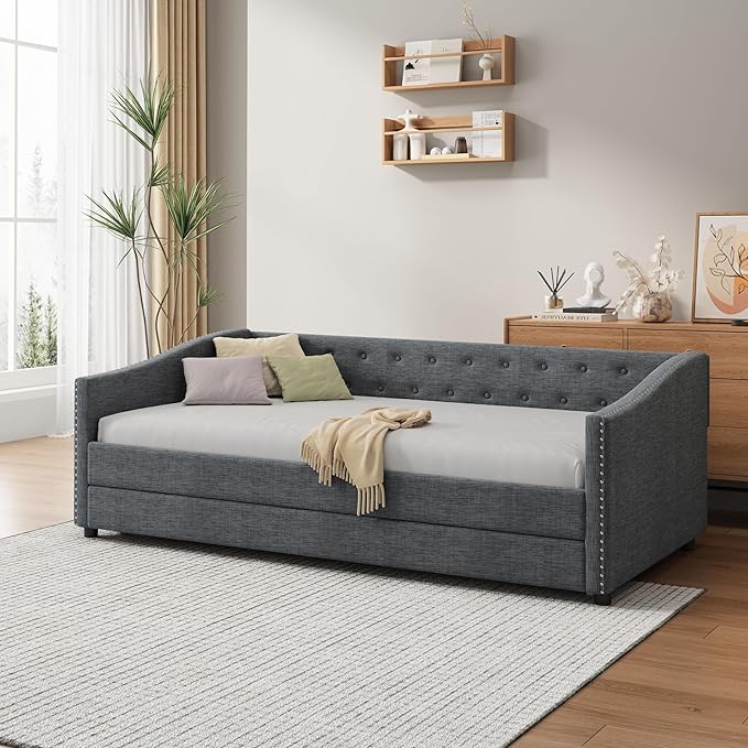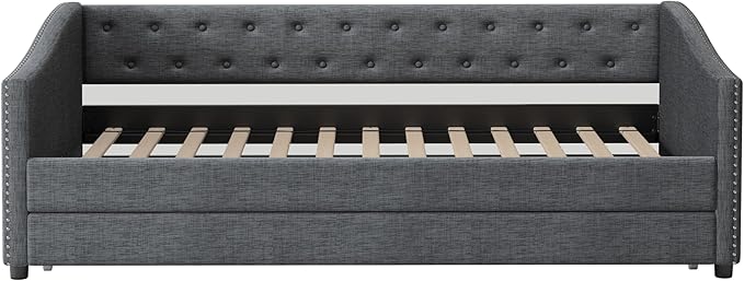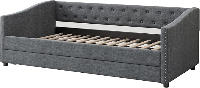 About This Linen Fabric 【Classical Design】This twin size classical upholstered daybed features button tufted backrest that creates an elegant look....