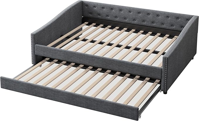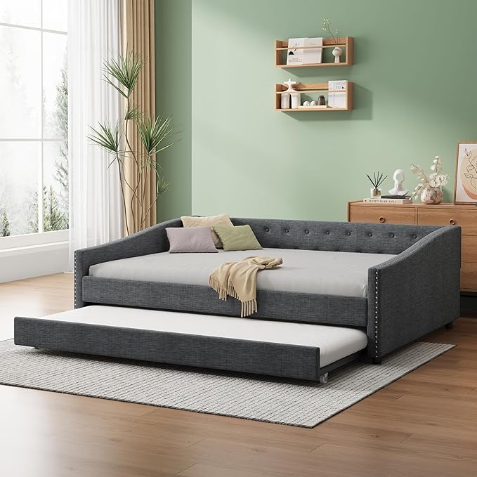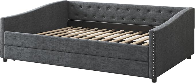About This Linen Fabric 【Classical Design】This full size classical upholstered daybed features button tufted backrest that creates an elegant look....