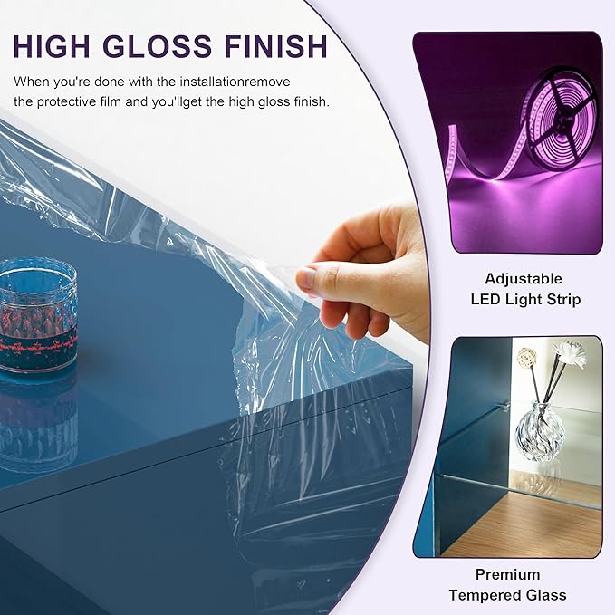 Clikuutory Blue LED TV Stand with Large Storage Drawer for 32 40 50 55 Inch TVs, Modern High gloss TV Console Table with Entertainment Center for Living Room, Bedroom, Blue