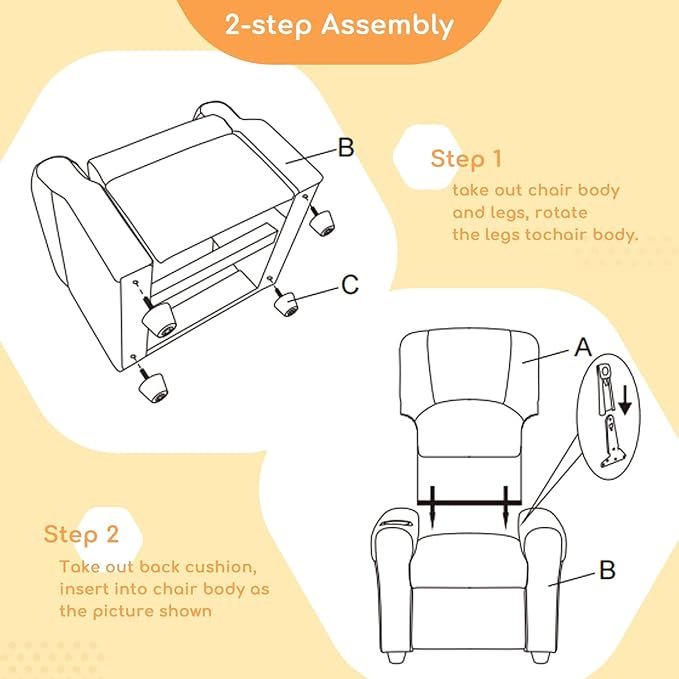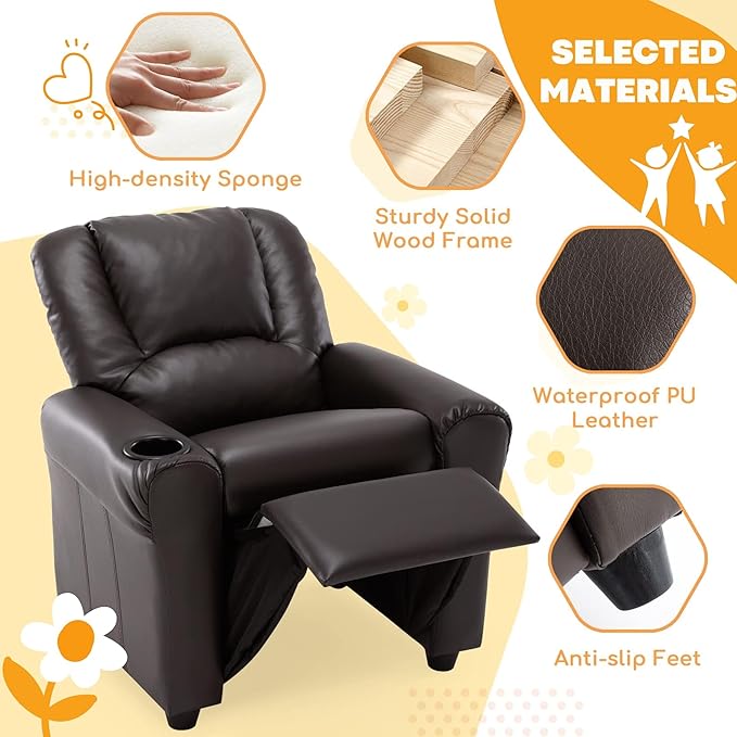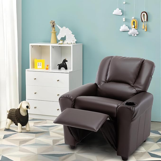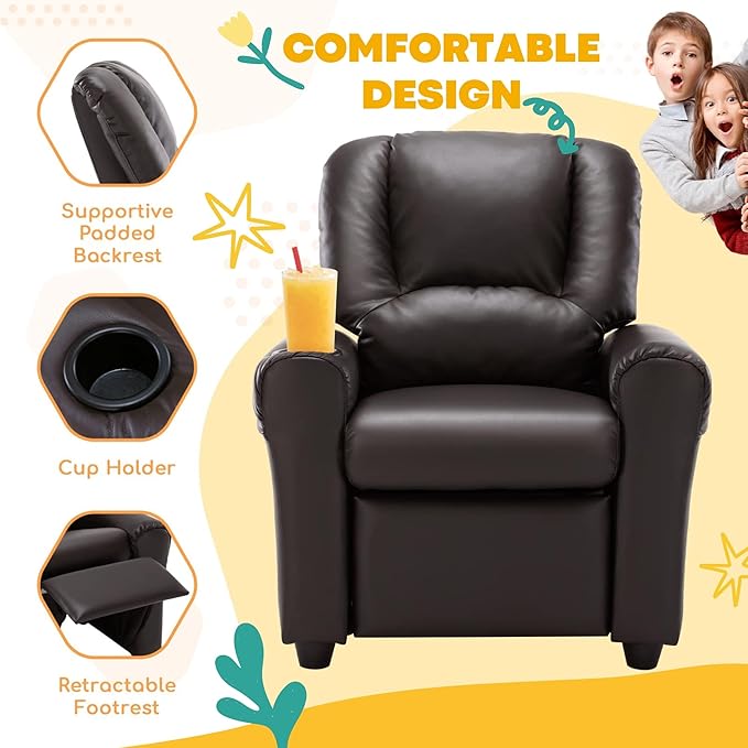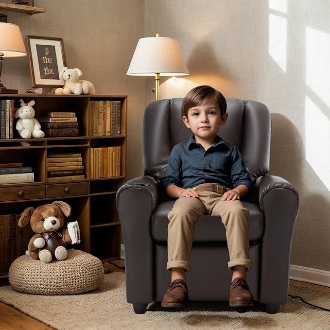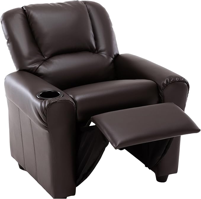 JC HOME CANDY Kids Chair Leather Recliner Sofa Toddler Youth Children Child Ages 3-7, Brown