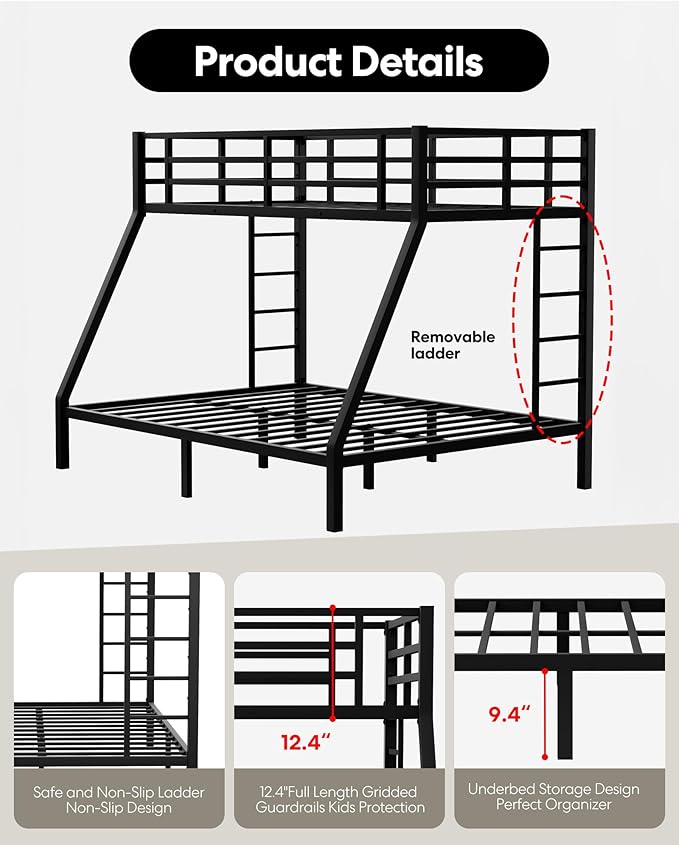 About This 💡💡【Durable Construction】This heavy-duty bunk bed is crafted from strong, heavy-duty metal, ensuring long-lasting durability and stability. The bed's...