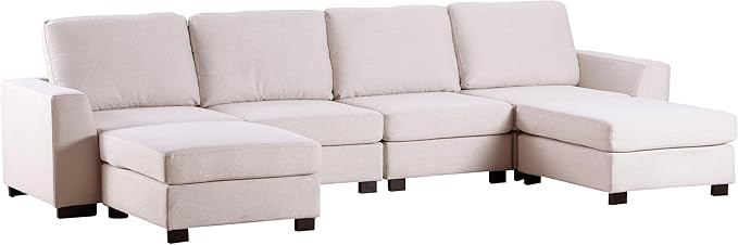 130.7" Large U-Shaped Sectional Sofa w/Removable Ottomans, 3-Pieces Modular Upholstered Couch with Double Chaise Lounge for Living Room Apartment Home Office, Beige, 130.7 Inch