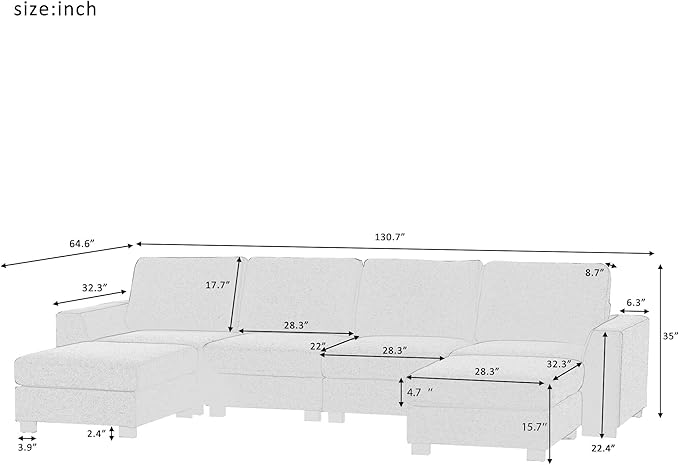 About This Polyester 【Free Combiation Sectional Sofa】3 piece modern large sectional sofa couch with removable ottomans can be freely combined...