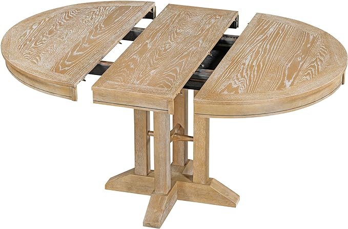 5-Piece Farmhouse Wood Dining Set with Extendable Round Table and 4 Upholstered Chairs for Kitchen, Breakfast Nook, Living Room, Natural, 42"-56" L x 42" W x 30" H