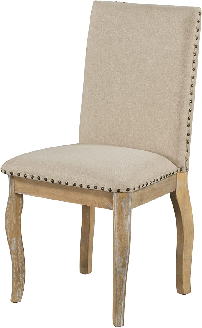 5-Piece Farmhouse Round Dining Set with Extendable Table and 4 Upholstered Chairs for Kitchen, Breakfast Nook, Living Room, Natural Wood Wash, 42"-58" L x 42" W x 30" H