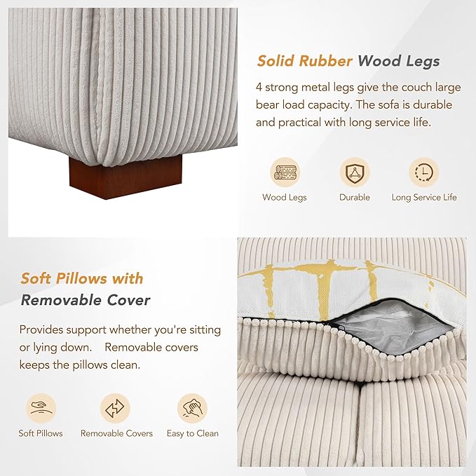Oversized 4 Seaters Corduroy Upholstery Modular Cloud Sectional Sofa Couch,Modern Living Room Deep Seat Upholstered TV Sofa&Couch with 4PCS Pillows and Rubber Wood Legs for Home Apartment