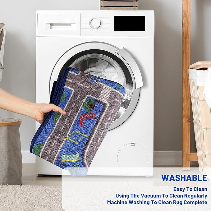 About This 🎁PREMIUM QUALITY: Kids car rug is 100% nylon pile surface with non-slip latex Backing. Non-toxic, Non-BPA, and lead-free...