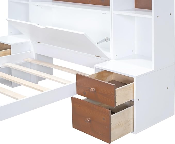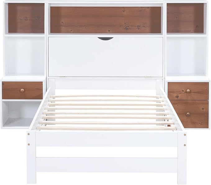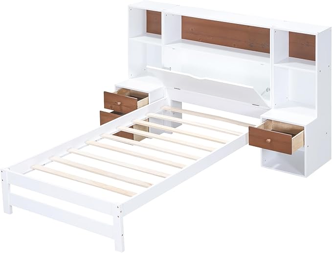 Merax Wood Bed Frame with Storage Headboard and Drawers, Twin Size Platform Bed with Nightstands, No Box Spring Needed White