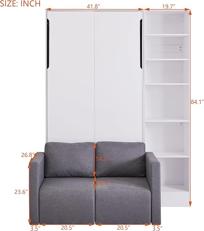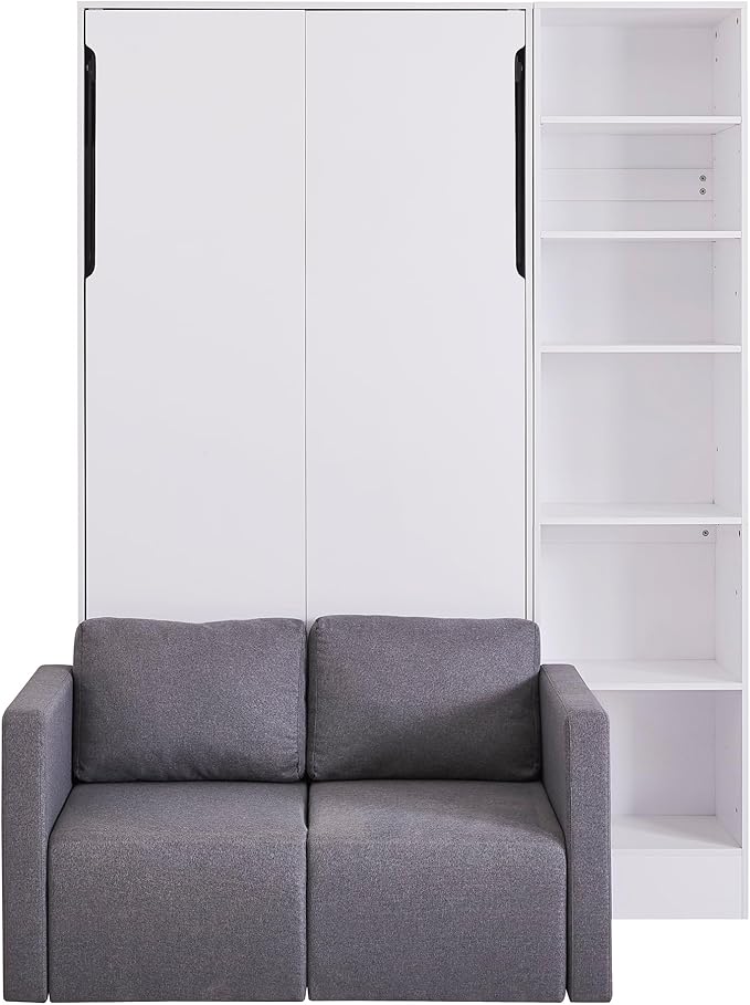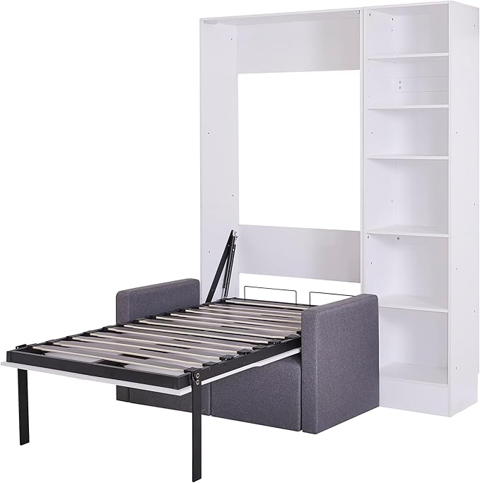Merax Twin Size Murphy Bed Wallbed with Sofa and Side Storage Shelves,Space Saving,for Guest Living Room