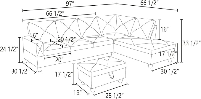 About This Microfiber 【Expansive L-Shaped Couches with Chaise Lounge & Ottoman】Our sectional sofa's expansive L-shaped configuration extends 97 inches, providing...