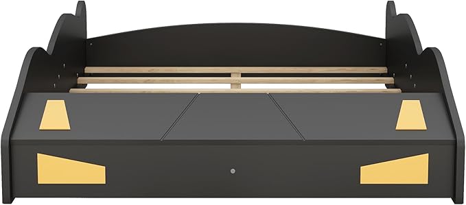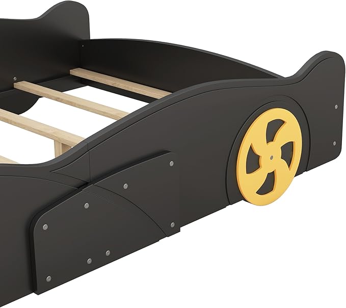 Full Size Race Car Bed Platform Bed with Wheels and Storage,Wood Bed Frame W/Wood Slats Support,for Kids Boys Girls Teens,Box Spring Not Required,Black+Yellow