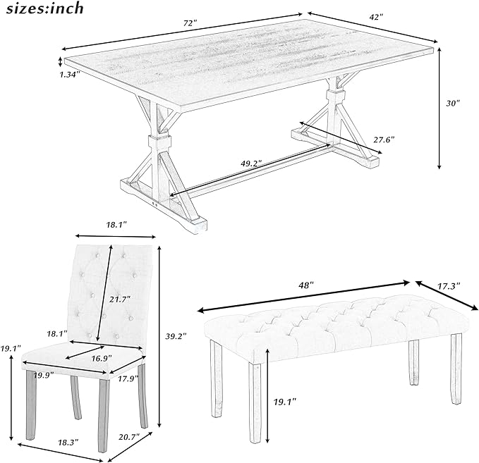 About This Wood Timeless Country Charm: Embrace the rustic allure of this 6-piece dining set, blending classic elegance with a...