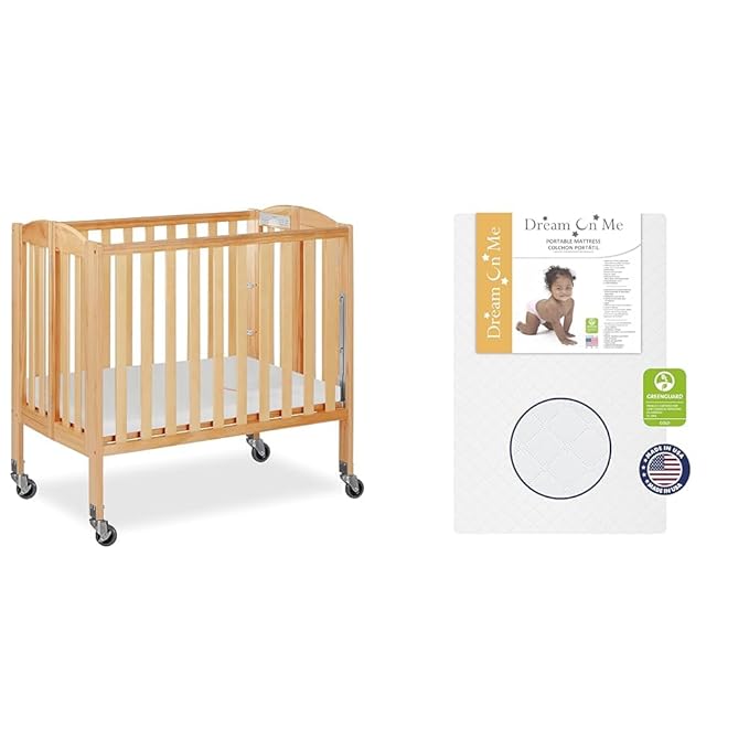 3-in-1 Folding Portable Crib and 3” Extra Firm Fiber Crib Mattress Bundle, Natural and Greenguard Gold Certified