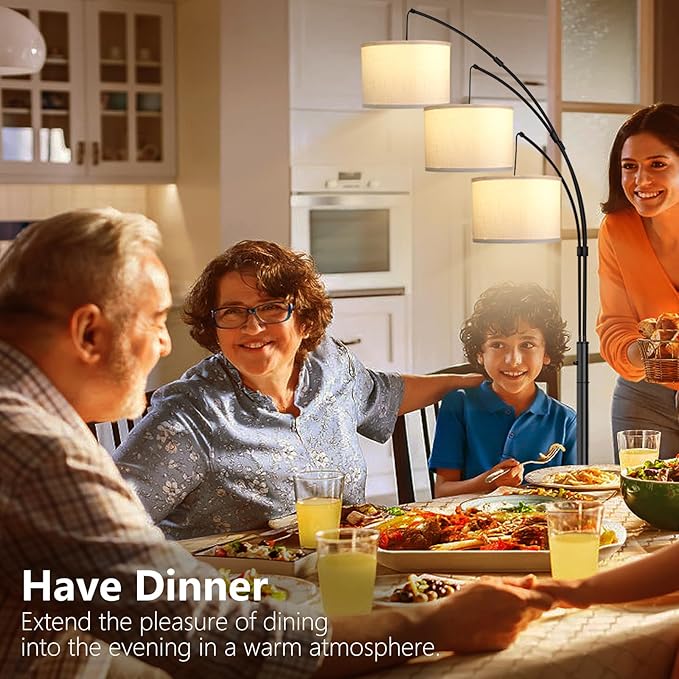 Dimmable Arc Floor Lamps for Living Room Modern 3 Lights Floor Lamp, Mid Century Tall Standing Reading Lamp 360° Adjustable Hanging Beige Shades for Bedroom Office Include Bulbs